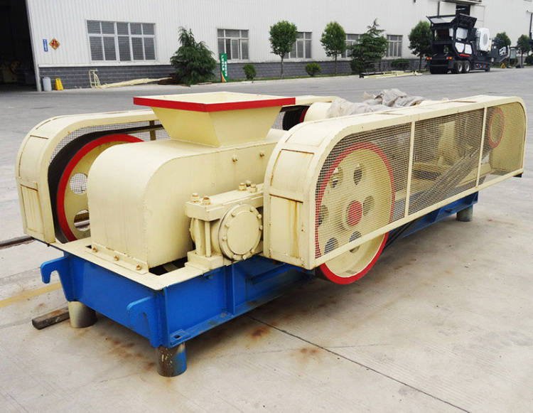 對(雙)輥破碎機是利用兩個高強度耐磨合金破碎輥,相對旋轉(zhuǎn)產(chǎn)生的高擠壓力來破碎物料,物料進入兩輥間隙(V 型破碎腔)以后,受到兩破碎輥相對旋轉(zhuǎn)的擠壓力和剪切力作用,在擠軋、剪切和嚙磨下,將物料破碎成需要的粒度從排料口排出。